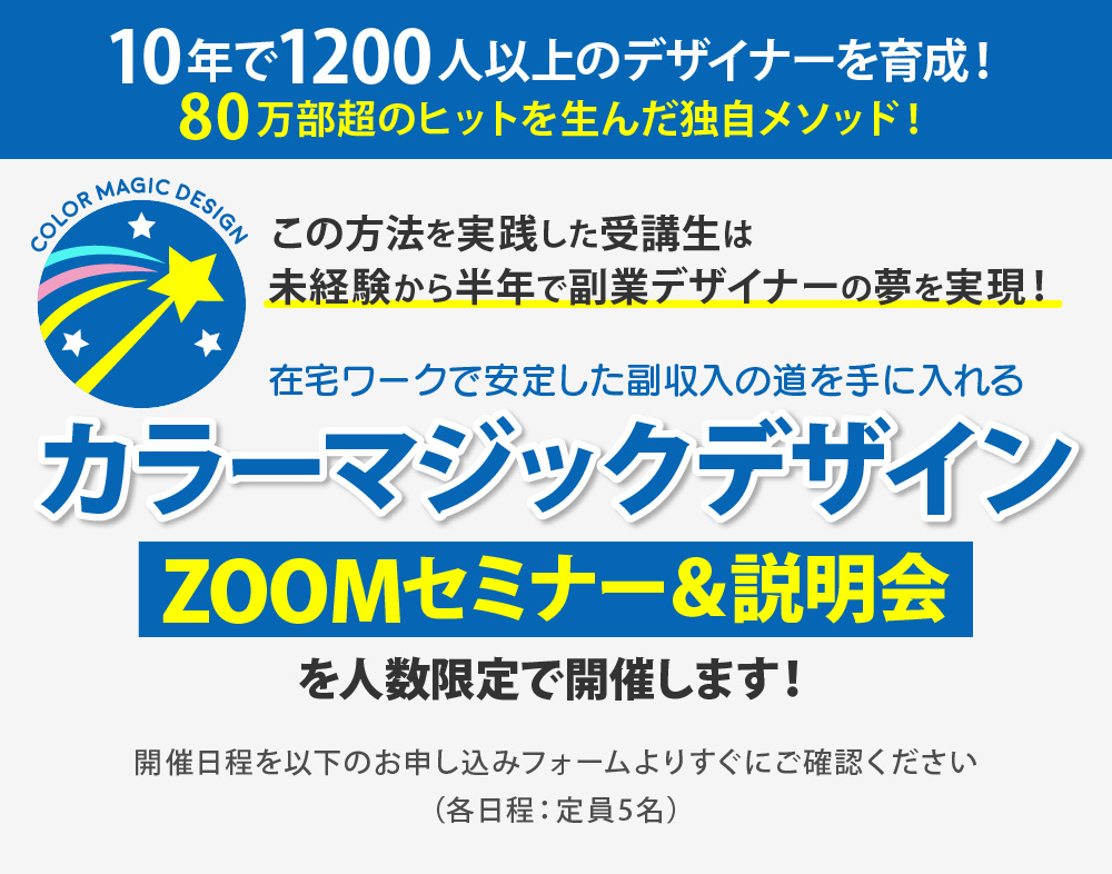 こちらは未経験から副業デザイナーを育成する、個別指導型オンラインスクール「カラーマジックデザイン」ご案内の仮ページです。